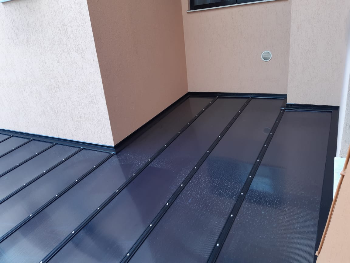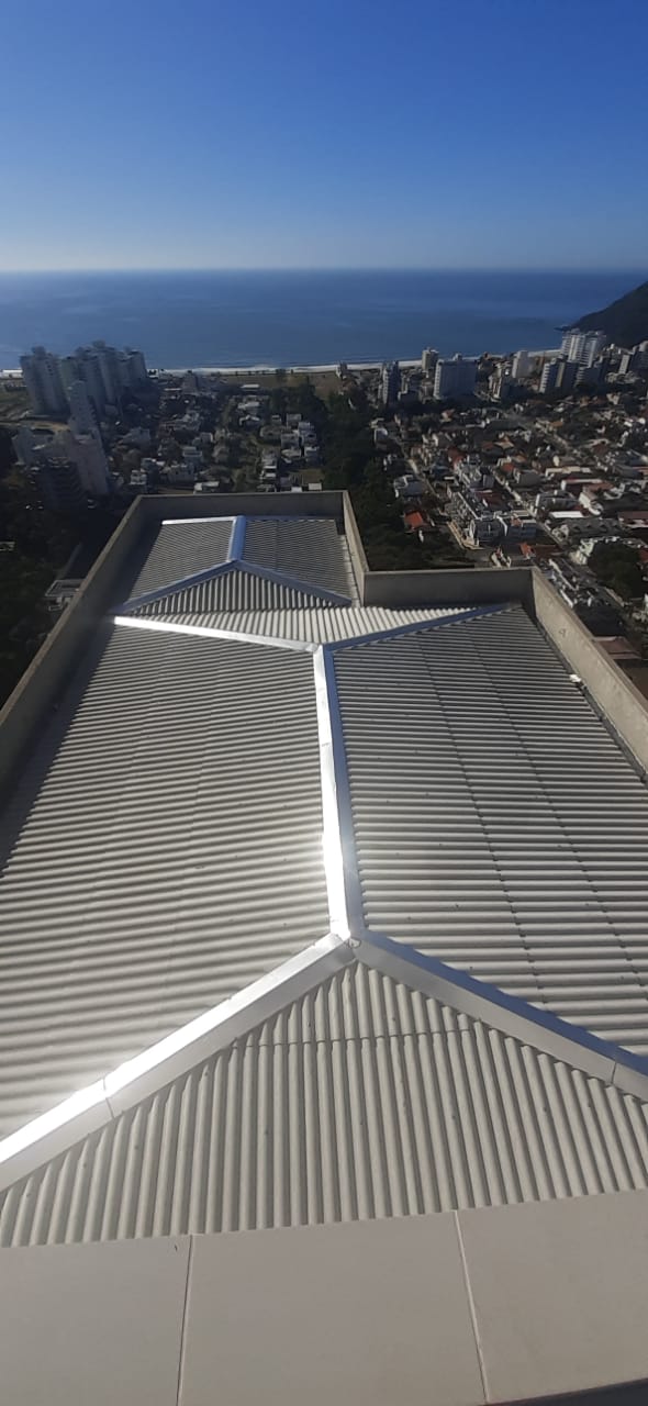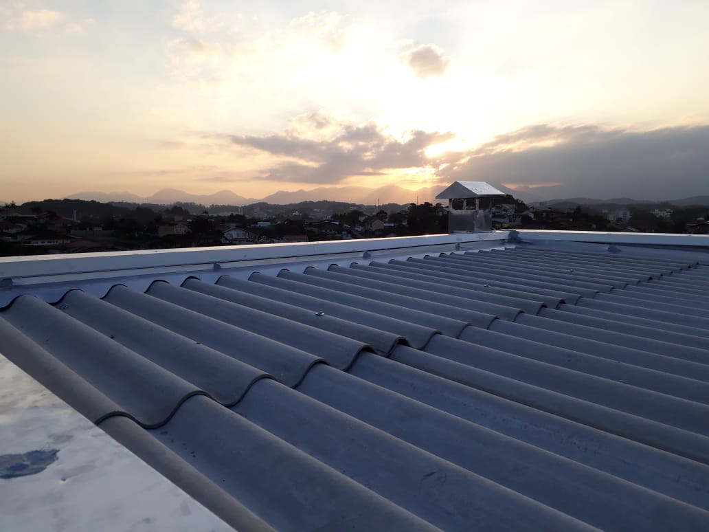 Para instalação, usamos silicone PU cinza especialmente desenvolvido para construção civil, excelente aderência e resistência. Ótimo para vedação de calhas e rufos.